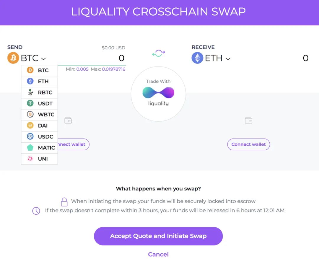 除钱包外, 还为用户构建了一个原子互换接口,用户可使用 或 钱包进行原子互换。